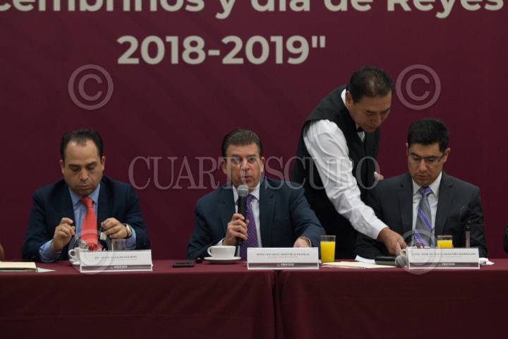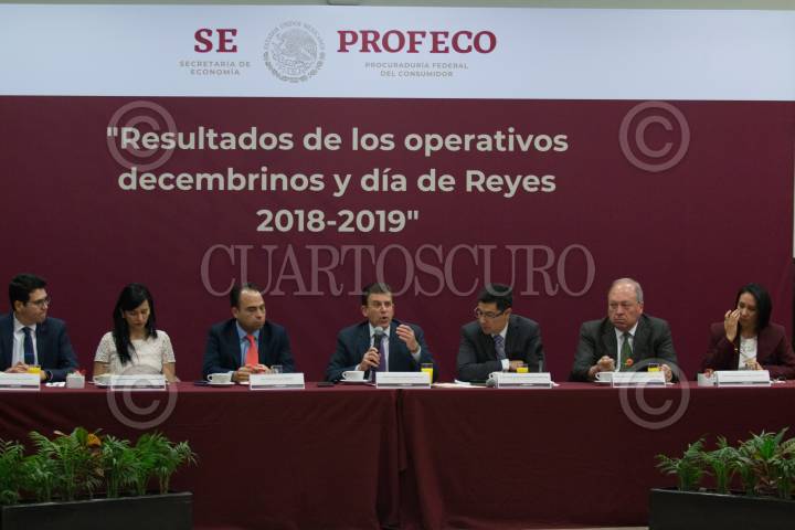 CIUDAD DE MÉXICO, 08ENERO2019.- Ricardo Sheffield Padilla, director general de la Procuraduría Federal del Consumidor, presidió conferencia de prensa para informar sobre resultados de los operativos decembrina y de día de Reyes 2018 -2019, también sobre las quejas por el desabasto de Gasolina, asistieron José Agustín Pineda Ventura, subprocurador de Telecomunicaciones; Surit Berenice Romero Domínguez, subprocuradora de Servicios; David Aguilar Romero, coordinador General de Educación y Divulgación y José de Jesús Montaño Barragán, director General de Comunicación Social. FOTO: ANDREA MURCIA /CUARTOSCURO.COM