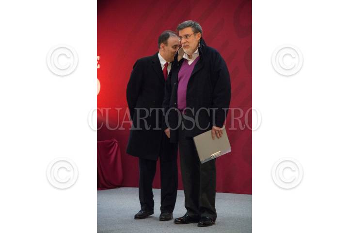 CIUDAD DE MÉXICO, 17ENERO2019.- Alfonso Durazo Montaño, secretario de Seguridad Publica y Julio Scherer Ibarra, consejero Jurídico del Ejecutivo Federal, durante conferencia de prensa para detallar los avances en la estrategia contra el robo de combustible, el secretario de Seguridad reiteró que se estableció un Comité de inteligencia interinstitucional para cumplir siete de objetivos principales. FOTO: ANDREA MURCIA /CUARTOSCURO.COM