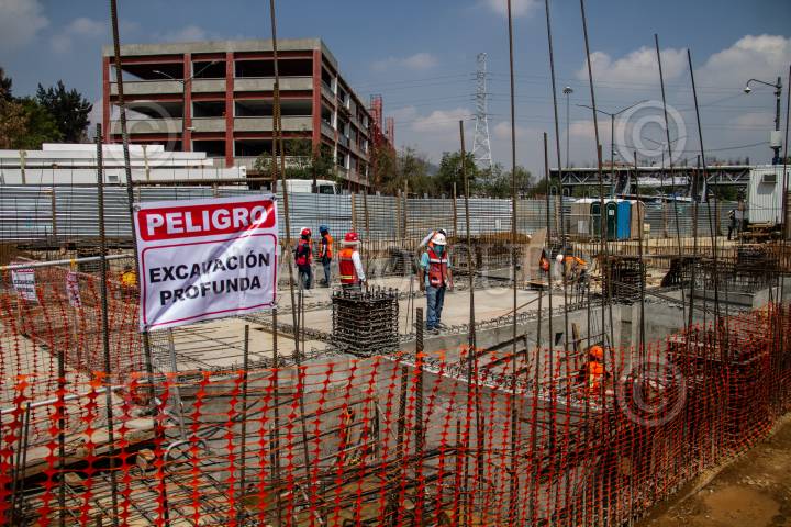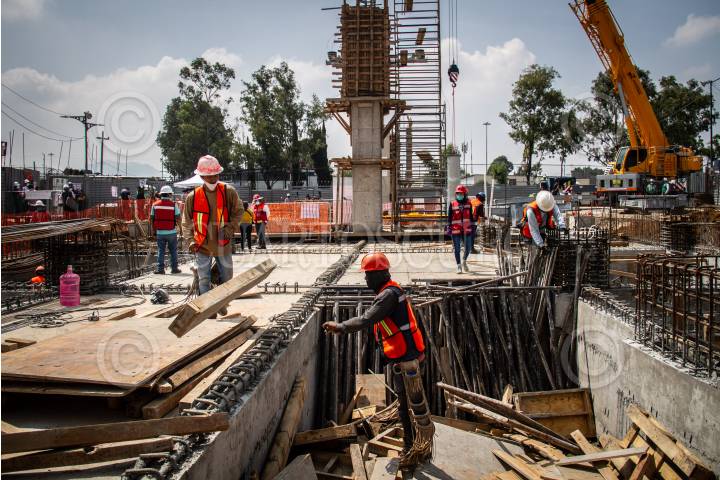 Trabajadores continúan las obras de contrsucción de la Línea 2 de Cablebus en iztapalapa