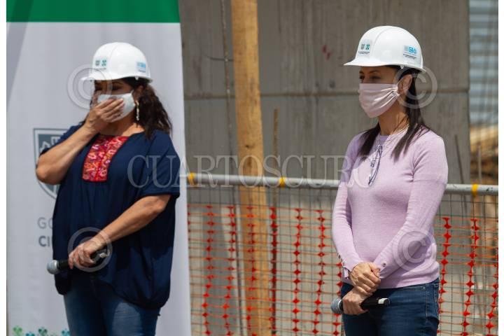 Claudia Sheinbaum Pardo, jefa de Gobierno de la Ciudad acompañada de Clara Brugada Molina, alcaldesa de Iztapalapadurante la supervisión de obra de construcción de la Línea 2 del Cablebus