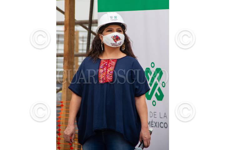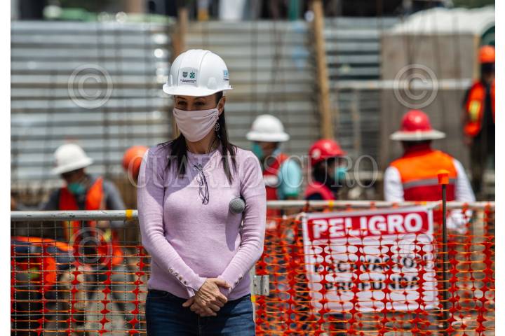 Clara Brugada Molina, alcaldesa de Iztapalapadurante la supervisión de obra de construcción de la Línea 2 del Cablebus