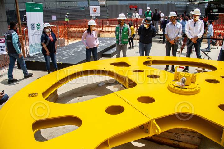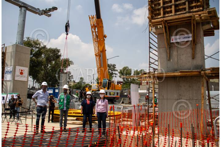 Claudia Sheinbaum Pardo, jefa de Gobierno de la Ciudad acompañada de Clara Brugada Molina, alcaldesa de Iztapalapa; Jesús Esteva Medina, secretario de Obras y Servicios y Andrés Lajous Loaeza, secretario de movilidad a la supervisión de obra de const
