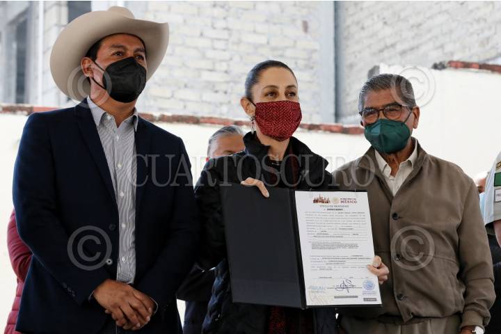 Claudia Sheinbaum Pardo, jefa de Gobierno de la Ciudad encabezó la entrega del predio donado del ejido Parres El Guarda de la alcaldía Tlalpan a la Secretaria de Seguridad y Protección Ciudadana. asistieron también Pedro Cuellar Villaseñor, inspector General de la Guardia Nacional; José Alfonso Suárez del Real, secretario de Gobierno; Javier Cervantes Chavarria, presidente del Ejido El Guarda.