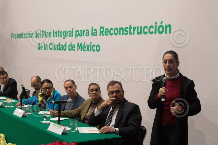 CIUDAD DE MÉXICO, 16DICIEMBRE2018.- Claudia Sheinbaum Pardo, Jefa de Gobierno, encabezó la presentación del "Plan Integral para la Reconstrucción de la Ciudad de México", en el Antiguo Palacio del Ayuntamiento. FOTO: MOISÉS PABLO /CUARTOSCURO.COM