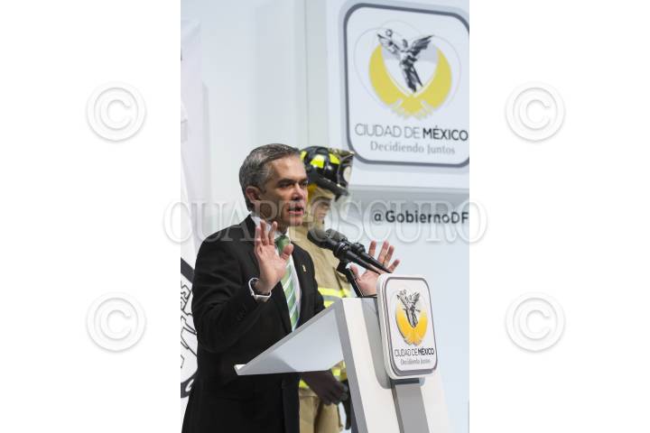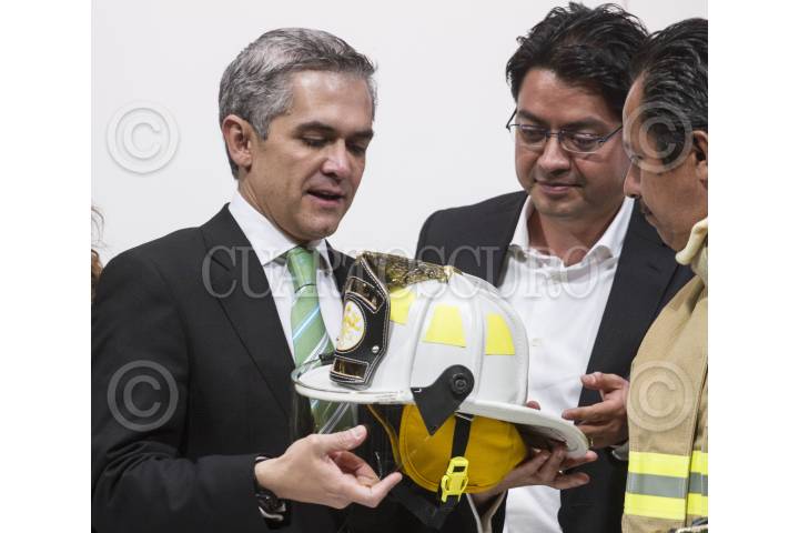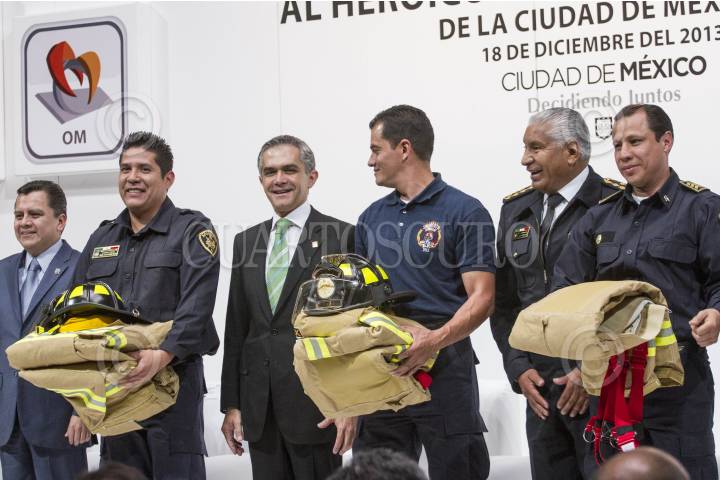 MÉXICO, DF., 18DICIEMBRE2013.- Miguel Ángel Mancera, jefe de Gobierno local, entregó equipo de protección al Heróico Cuerpo de Bomberos. FOTO: ISAAC ESQUIVEL /CUARTOSCURO.COM