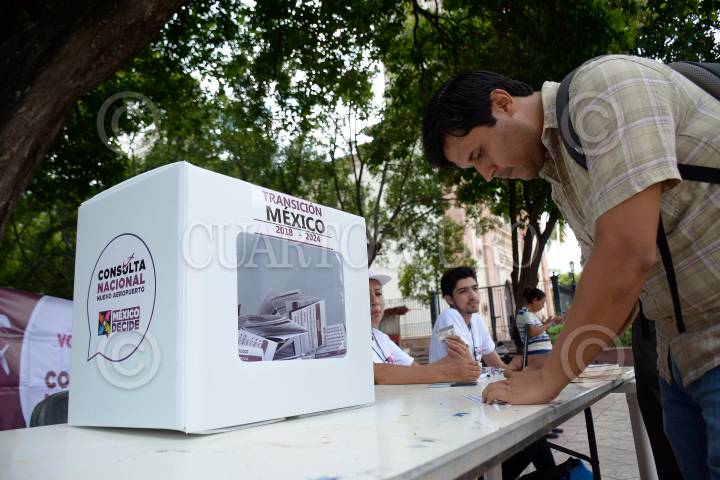 LEÓN, GUANAJUATO, 25OCTUBRE2018.- Cientos de leoneses participaron en la Consulta Nacional Nuevo Aeropuerto "México Decide", con una votación copiosa en la mesa instalada en la Plaza Central. FOTO: GUSTAVO BECERRA /CUARTOSCURO.COM