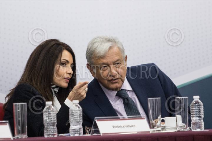 CIUDAD DE MÉXICO, 26NOVIEMBRE2018.- Verónica Velasco y Andrés Manuel López Obrador, presidente electo de México, durante el lanzamiento de la convocatoria para la Constitución Moral que pretende impulsar el gobierno electo. FOTO: MISAEL VALTIERRA /CUARTOSCURO.COM