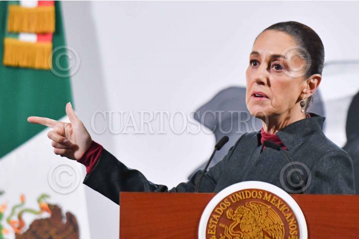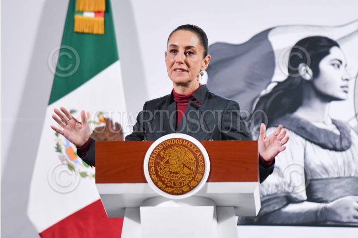 CIUDAD DE MÉXICO, 29ENERO2025.- Claudia Sheinbaum, presidenta de México, durante la conferencia matutina realizada en Palacio Nacional, en la que presentó y firmó las leyes secundarias de la Ley Energética, la cual indica que Pemex y CFE serán empresas públicas del Estado. FOTO: MARIO JASSO/CUARTOSCURO.COM