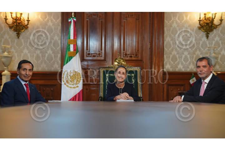 CIUDAD DE MÉXICO, 29ENERO2025.- Claudia Sheinbaum, presidenta de México, durante la conferencia matutina realizada en Palacio Nacional, en la que presentó y firmó las leyes secundarias de la Ley Energética, la cual indica que Pemex y CFE serán empresas públicas del Estado. La acompañaron: Victor Rodríguez Padilla, director general de Petróleos Mexicanos (PEMEX); Luz Elena González Escobar, secretaria de Energía; Ernestina Godoy Ramos, consejera jurídica del Ejecutivo Federal; Emilia Esther Calleja Alor, directora general de la Comisión Federal de Electricidad (CFE), y Miguel Elorza Vásquez, coordinador de la sección Infodemia. FOTO: MARIO JASSO/CUARTOSCURO.COM