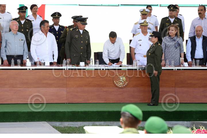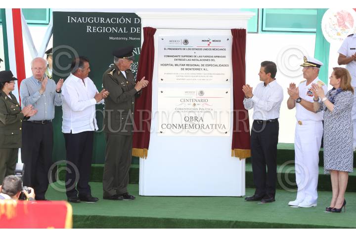 MONTERREY, NUEVO LEÓN, 19ABRIL2017.- Con una inversión de 513 millones de pesos, el Presidente Enrique Peña Nieto y el Gobernador Jaime Rodríguez Calderón inauguraron la ampliación del Hospital Regional Militar de Especialidades y un Centro de Desarrollo Infantil. Ubicado en el Campo Militar 7B, situado en Monterrey, el Hospital beneficiará a 97 mil 350 militares y sus familias de Nuevo León, Tamaulipas, Coahuila y San Luis Potosí. Ante el Secretario de la Defensa Nacional, General Salvador Cienfuegos Zepeda y el Secretario de Marina, Almirante Vidal Francisco Soberón Sanz, el Gobernador destacó la labor que realizan las Fuerzas Armadas en Nuevo León para mantener la paz. FOTO: PRENSA NL /CUARTOSCURO.COM
