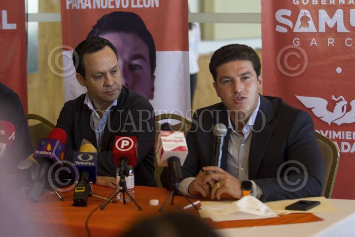 Clemente Castañeda, dirigente nacional de Movimiento Ciudadano y Samuel García, candidato a la gubernatura de Nuevo León, ofrecieron una rueda de prensa donde acusan al presidente Andrés Manuel López Obrador de entrometerse en la contienda electoral de Nuevo León, así mismo señalan que el PRI apuesta por una guerra sucia en contra del candidato Samuel García y su partido.