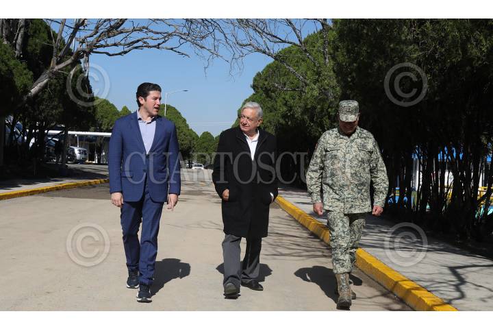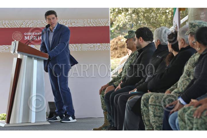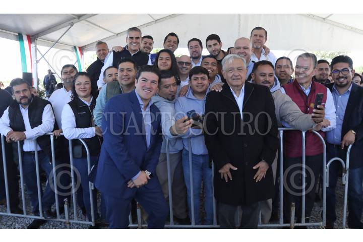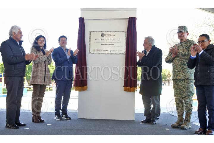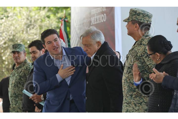 CIUDAD BENITO JUÁREZ, NUEVO LEÓN, 16DICIEMBRE2023.- el presidente Andrés Manuel López Obrador y el gobernador de Nuevo León, Samuel García, inauguraron el segundo acueducto de la Presa El Cuchillo II. El Cuchillo, aportará 5,000 litros por segundo de agua al área metropolitana de Monterrey. La obra, fue realizada en dos fases y tuvo una inversión de 12.244 millones de pesos, monto Federal correspondiente de 6,543 millones de pesos y gasto Estatal de 5,701 mdp, según cifras oficiales del gobierno de Nuevo León. FOTO: CUARTOSCURO.COM