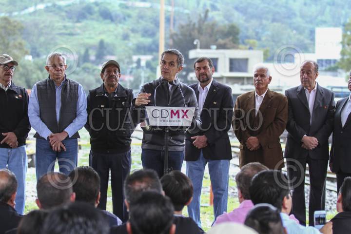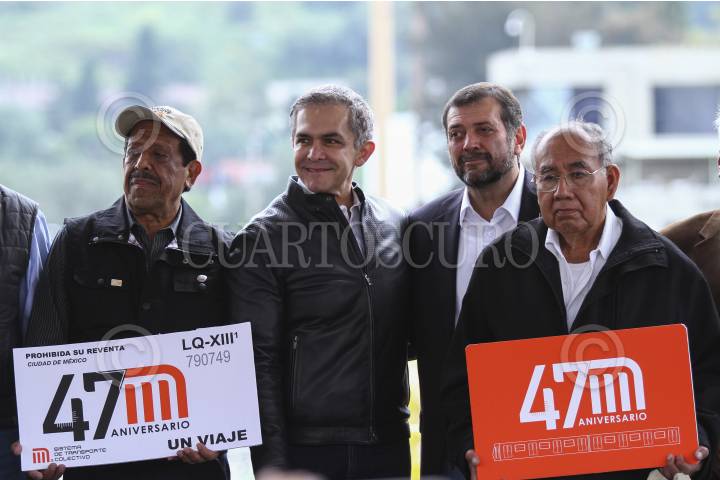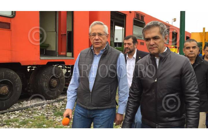 CIUDAD DE MÉXICO, 04SEPTIEMBRE2016.- Miguel Ángel Mancera, jefe de gobierno de la ciudad, y Jorge Gaviño Ambriz, director general de Sistema de Transporte Colectivo Metro (STCM), durante la puesta en marcha de 6 trenes rehabilitados, al cumplirse el aniversario 47 de la puesta en marcha el Metro en el Distrito Federal. Los trenes fueron habilitados en los Talleres Ticomán del STCM. FOTO: ADOLFO VLADIMIR /CUARTOSCURO.COM