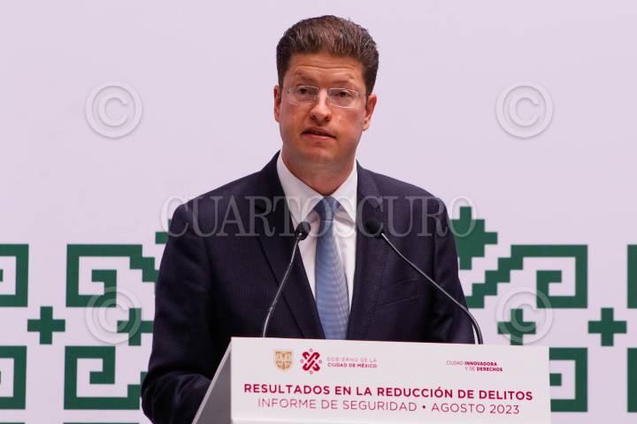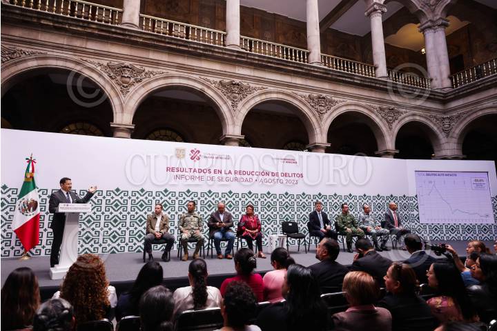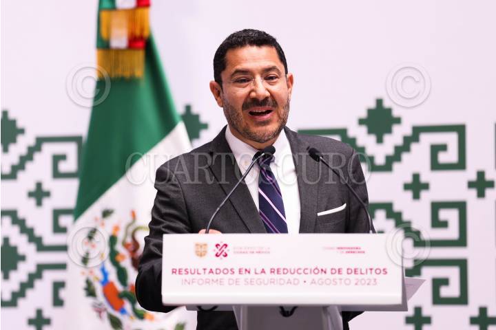 CIUDAD DE MÉXICO, 12SEPTIEMBRE2023.- En el Palacio del Ayuntamiento de la Capital, el jefe de Gobierno Martí Batres Guadarrama; en la presentacion de los Resultados en la reducción de Delitos. Encabezaron además del mandatario local, Ernestina Godoy Físcal y el titular de la Secretaria de Seguridad Ciudadana, Pablo Vázquez Camacho. FOTO: GOBIERNO DE LA CIUDAD/CUARTOSCURO.COM