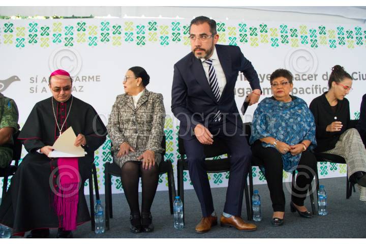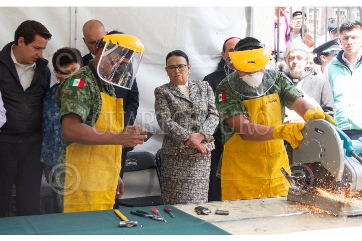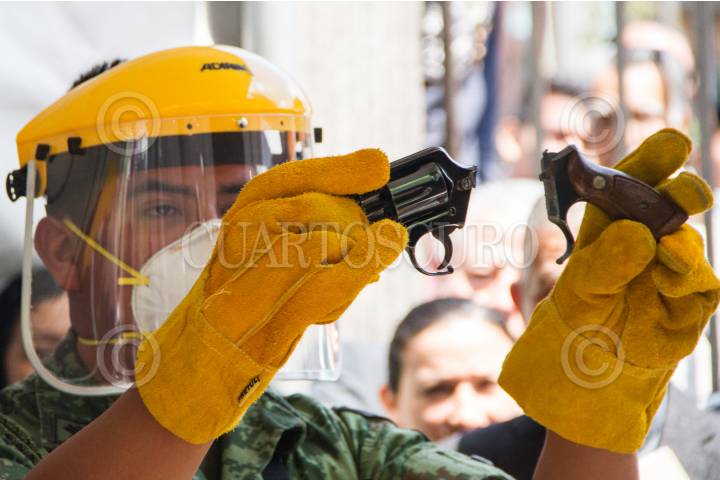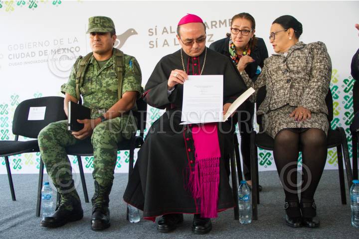 CIUDAD DE MÉXICO, 29JULIO2019.- Rosa Isela Rodríguez, secretaria de Gobierno de la Ciudad, acompañada de Jesús Orta, de la SSC y la Fiscal de la Capital, Ernestina Godoy encabezó la campaña Sí al Desarme, Sí a la Paz, desarme voluntario en el atrio de la Catedral Metropolitana. Niños canjearon sus juguetes bélicos por juguetes didácticos. FOTO: VICTORIA VALTIERRA /CUARTOSCURO.COM