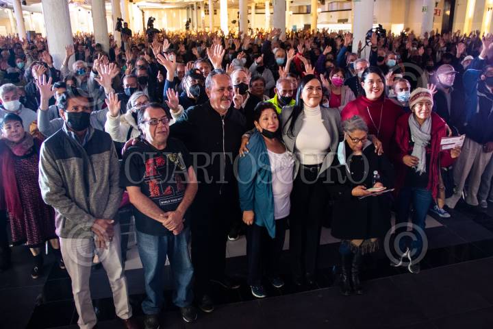 Entrega de Tarjetas del Bienestar, a adultos mayores de la alcaldía Cuauhtémoc, el evento tuvo lugar en el Centro de Convenciones Tlatelolco.