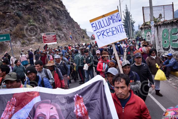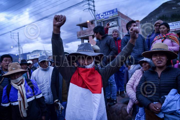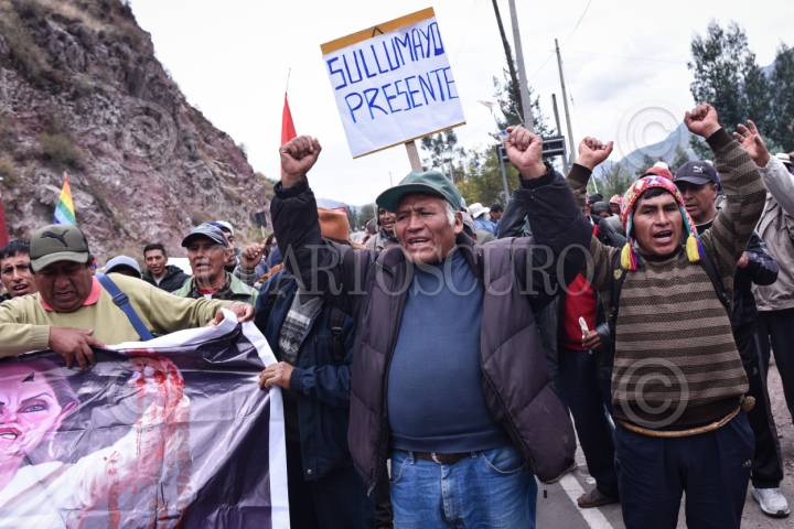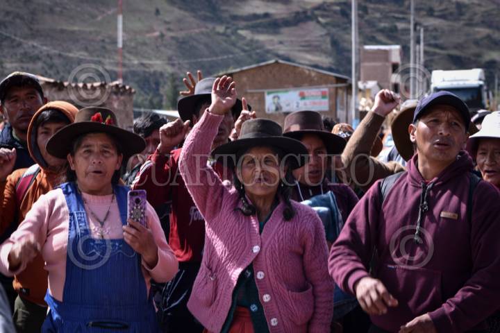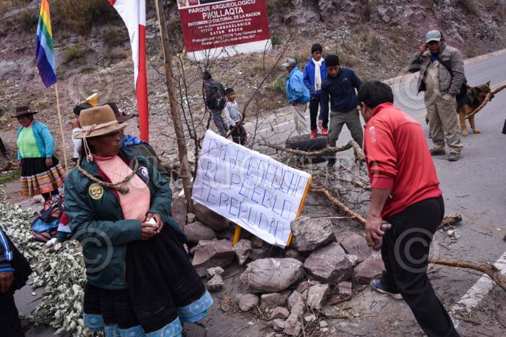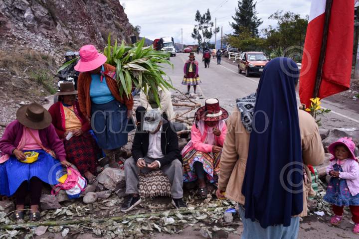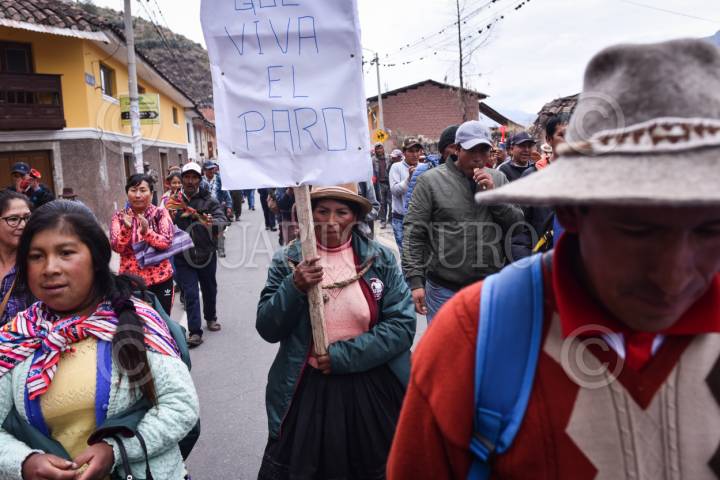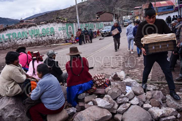 Pobladores de la localidad de Huaro, dentro del departamento de Cuzco, se unieron al paro nacional convocado por organizaciones sociales pertenecientes a la Asamblea Macrosur.