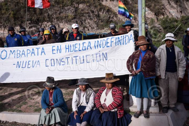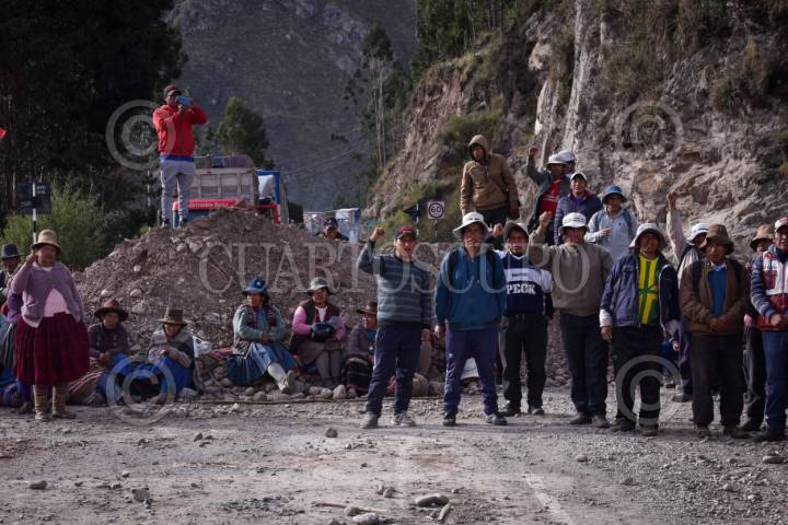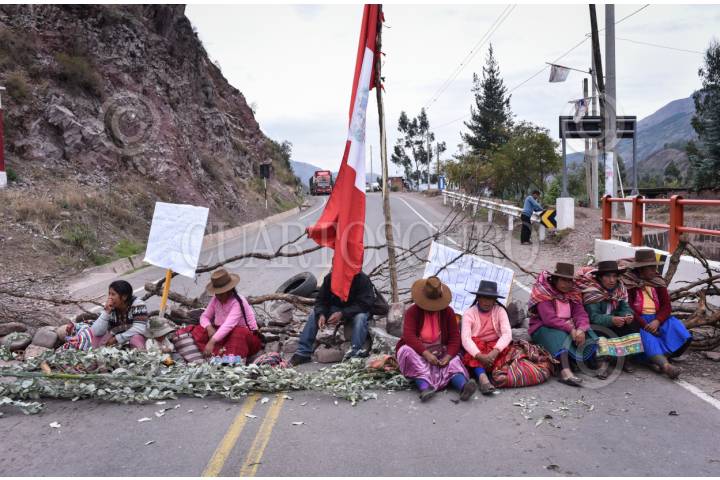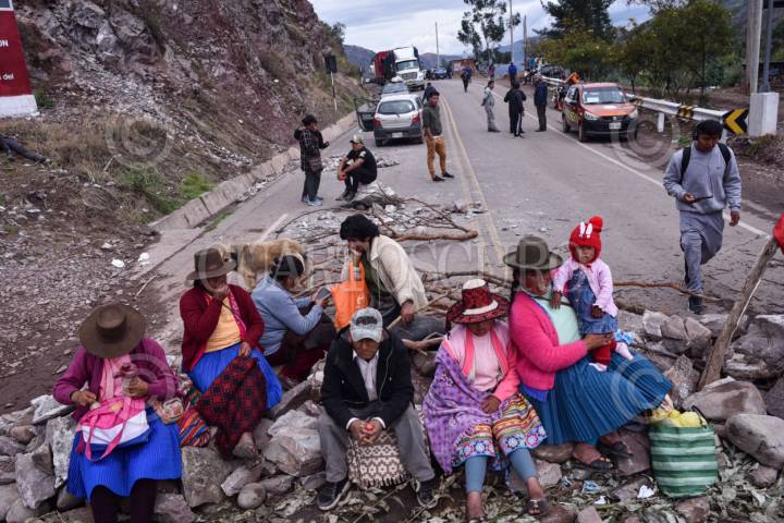 Pobladores de la localidad de Combapata mantienen el bloqueo adhiriéndose con ello al paro nacional.