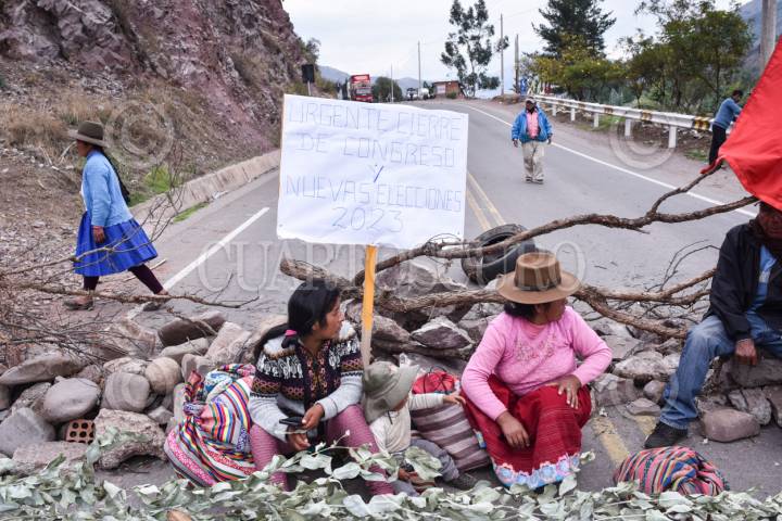 Pobladores de las distintas localidades de la carretera que va de Cusco a Sicuani, como son Huaro, Tinta, Combapata, Ccolca, se unieron al paro nacional convocado por organizaciones sociales pertenecientes a la Asamblea Macrosur. A modo de protesta, los inconformes mantienen bloqueados distintos tramos de dicha carretera y en sus consignas exigen el cumplimiento de cuatro puntos, el cual destaca la renuncia de la presidenta Dina Boluarte.