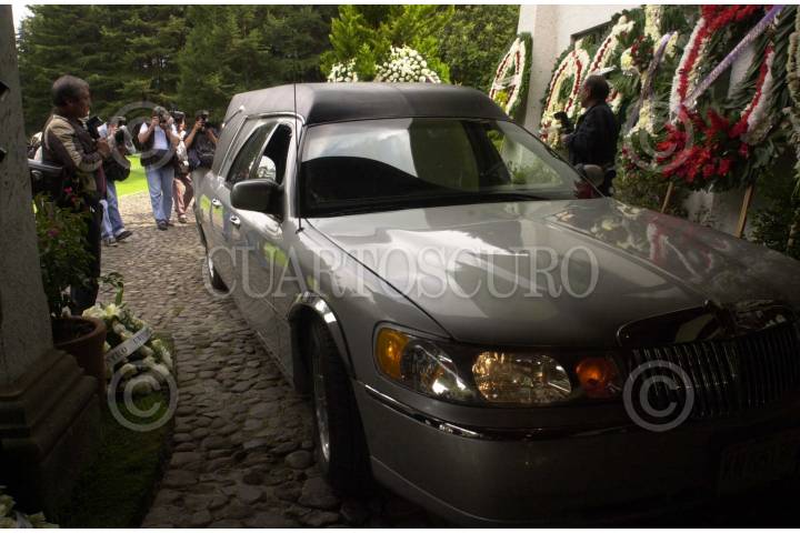 Al rededor de las cuatro y media de la tarde arribo la carrosa donde era transportado el cadáver de Carlos Hank González a su llegada al rancho San Catarino en el Estado de México. FOTO: Christian Palma/CUARTOSCURO.COM