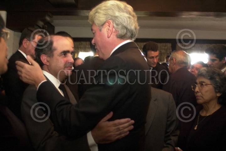 Leonardo Rodriguez Alcaine y Roberto Madrazo durante el velorio del politico mexiquense Carlos Hank González. FOTO: Christian Palma/CUARTOSCURO.COM