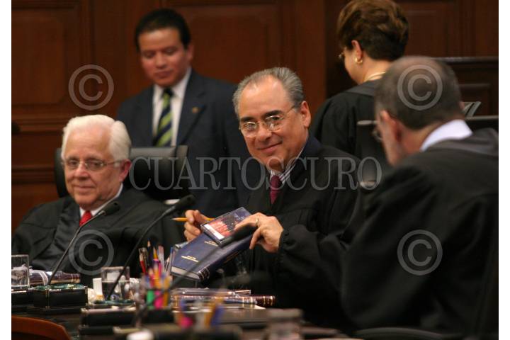 MÉXICO D.F. 08NENRO2006.- El magistrado presidente, Guillermo I. Ortiz Mayagoitia, y los magistrados José Fernando Franco González-Salas y Sergio Salvador Aguirre Anguiano durante la sesión en la suprema corte de justicia donde se voto por la controvercia del poder judicial de Talxcala. FOTO. GUILLERMO PEREA /CUARTOSCURO.COM