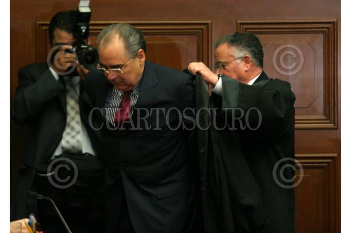 MÉXICO D.F. 08NENRO2006.- Los magistrados, José Fernando Franco González-Salas y Sergio Salvador Aguirre Anguiano, durante la sesión en la suprema corte de justicia donde se voto por la controvercia del poder judicial de Talxcala. FOTO: GUILLERMO PEREA /CUARTOSCURO.COM