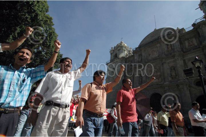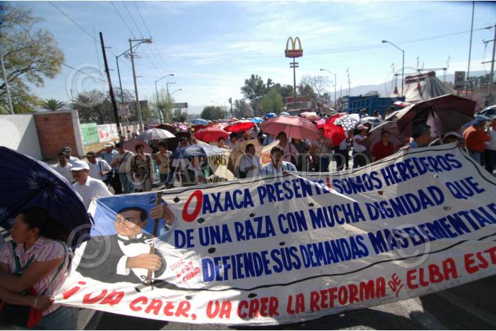 OAXACA, OAXACA, 15FEBRERO2008.- En el marco de la marcha de la Sección 22, este viernes sostendrán, por primera vez después del conflicto social de 2006, una mesa formal entre funcionarios del gobierno estatal y la Sección 22 para atender la problemática de las escuelas. El secretario de Organización de la Sección 22, Ezequiel Rosales Carreño informó que él encabezará esta mesa de diálogo en la que estará presente el secretario general de Gobierno, Manuel García Corpus; el procurador de Justicia, Evencio Nicolás Martínez Ramírez y el director del IEEPO, Abel Trejo González. FOTO: MAX NUÑEZ/CUARTOSCURO.COM