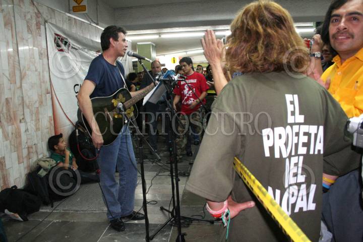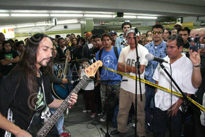 MÉXICO, D.F. 19SEPTIEMBRE2006.- A 21 años de la Muerte de Rockrigo González, quien falleciera en el terremoto ocurrido en 1985, se realizó un homenaje en el metro Balderas, participaró el grupo "Heavy Nopal". FOTO: PAOLA HIDALGO/CUARTOSCURO.COM
