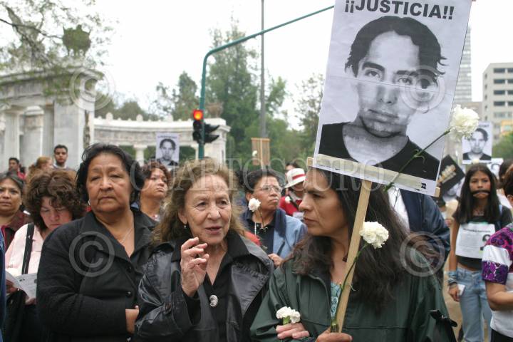 México, D.F.,29ABRIL2004.- Rosario Ibarra y Lourdes González, madre del joven universitario de la facultad de Filosfía, Noe Pavel González González quien fuera asesinado y cuyo cuerpo fue abandonado en el cerro del Ajusco, encabezaron una marcha del silencio en su memoria y para exigir a las autoridades que su crimen se esclarecido. FOTO: Sandra Perdomo/CUARTOSCURO.COM