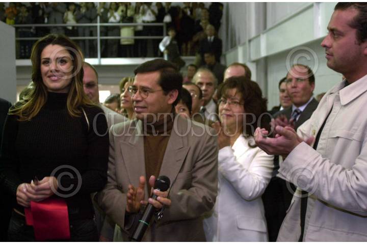 México D.F. 22 ENERO 2004.- La conductora de televisión Luz Elena González, Victor Hugo Cirigo Vázquez, jefe delegacional de Iztapalapa y Ernesto Zedillo jr., hijo del expresidente, durante la inauguración de la zapateria Star Shoes. FOTO: Sandra Perdomo/CUARTOSCURO.COM