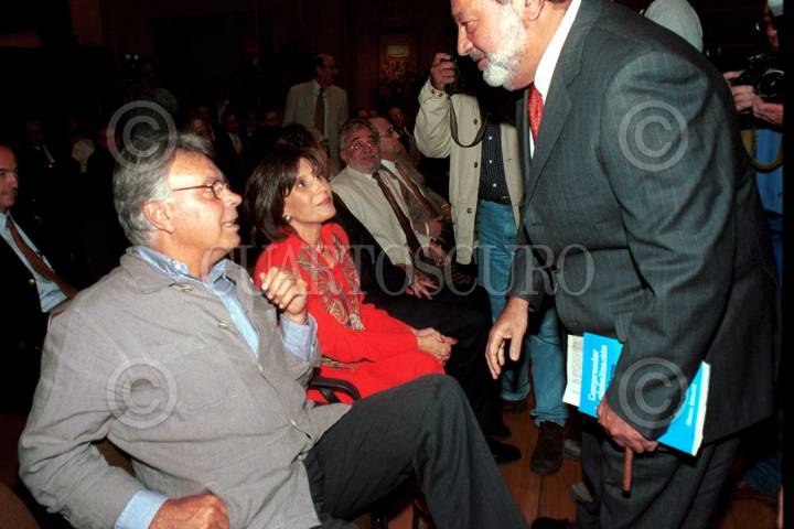 El ex mandatario español Felipe González asistió a la presentación del libro " Comprender la Globalización" ; aquí en un breve intercambio de opiniones con el empresario Carlos Slim. FOTO: Oswaldo Ramirez/CUARTOSCURO.COM