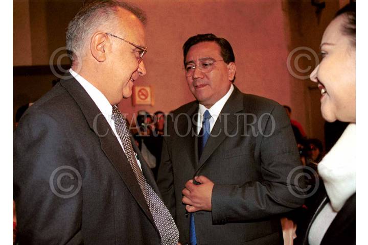 Enrique González Torres y Pablo Salazar Mendiguchía durante la inauguración del foro Vive Chiapas que se lleva acabo en la universidad Iberoamericana. FOTO: Victoria Valtierra/CUARTOSCURO.COM