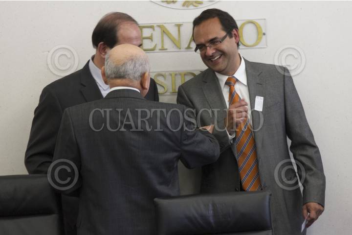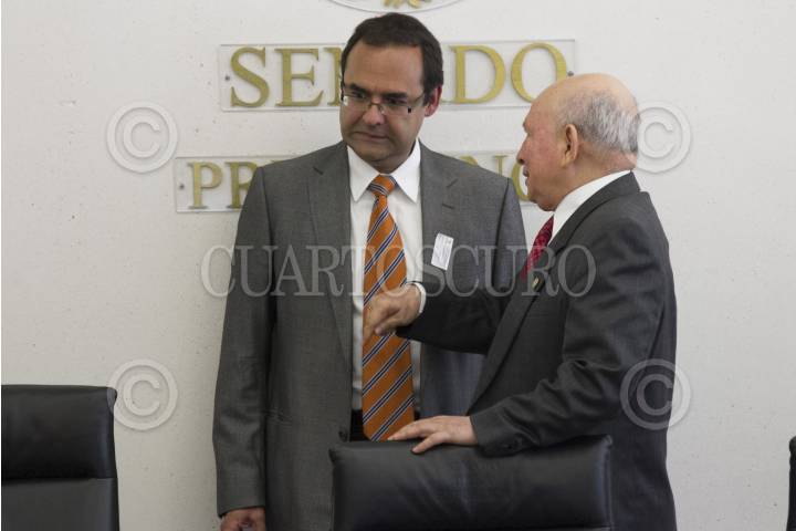CIUDAD DE MÉXICO, 26JULIO2016.- Gonzálo Hernández Licona, secretario ejecutivo del Consejo Nacional de Evaluación de la Política de Desarrollo Social (Coneval), se reunió con la Tercera Comisión del Senado de la República. El Coneval anunció que no publicará en el plazo anunciado la medición de pobreza 2015 por entidad federativa ni su evolución, esto en acuerdo con el Inegi, quien estableció que un grupo de trabajo independiente revise los detalles del Módulo de Condiciones Socioeconómicas. En la imagen Hernández Licona conversa con el senador Manuel Cavazos Lerma. FOTO: MOISÉS PABLO /CUARTOSCURO.COM