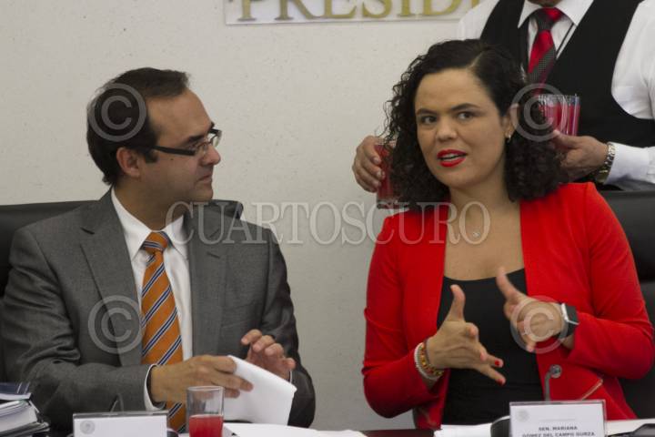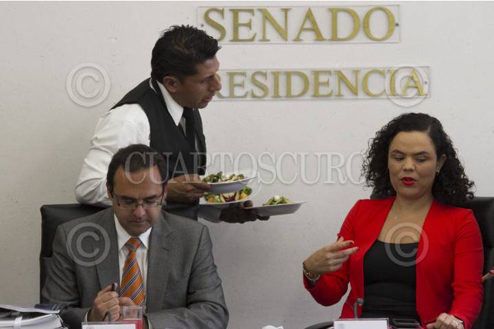 CIUDAD DE MÉXICO, 26JULIO2016.- Gonzálo Hernández Licona, secretario ejecutivo del Consejo Nacional de Evaluación de la Política de Desarrollo Social (Coneval), se reunió con la Tercera Comisión del Senado de la República. El Coneval anunció que no publicará en el plazo anunciado la medición de pobreza 2015 por entidad federativa ni su evolución, esto en acuerdo con el Inegi, quien estableció que un grupo de trabajo independiente revise los detalles del Módulo de Condiciones Socioeconómicas. En la imagen con la senadora Mariana Gómez del Campo. FOTO: MOISÉS PABLO /CUARTOSCURO.COM