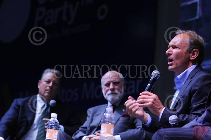 MÉXICO, D.F., 19JULIO2011.- Al Gore, Vinton Cerf, y Tim Berners-Lee, durante una conferencia magistral en el "Campus Party México 2011", la cual se realiza Expo Santa Fe. FOTO: GABINO ACEVEDO/CUARTOSCURO.COM