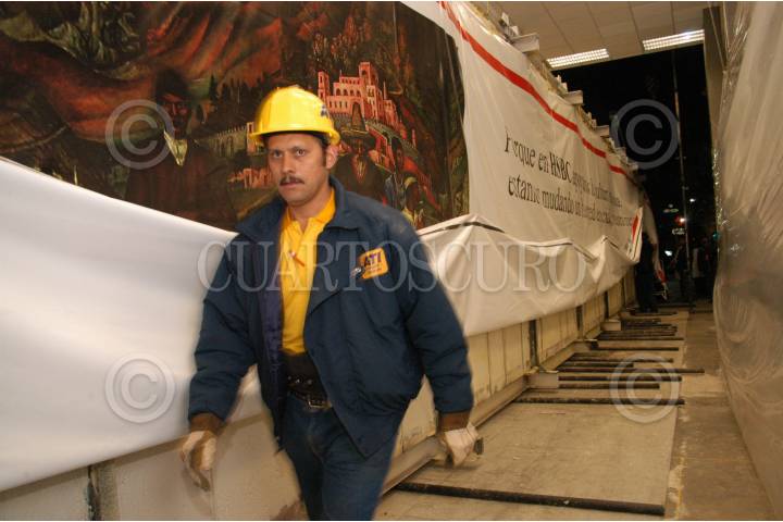 MÉXICO, D.F. 10DICIEMBRE2005.- Cerca de cien personas participaron en el traslado del mural El crèdito transforma a Mèxico de Juan O´Gorman a la altura de Tíber y Reforma donce se encuantran las nuevas oficinas del Banco HSBC. FOTO:Miriam Sánchez/CUARTOSCURO.COM