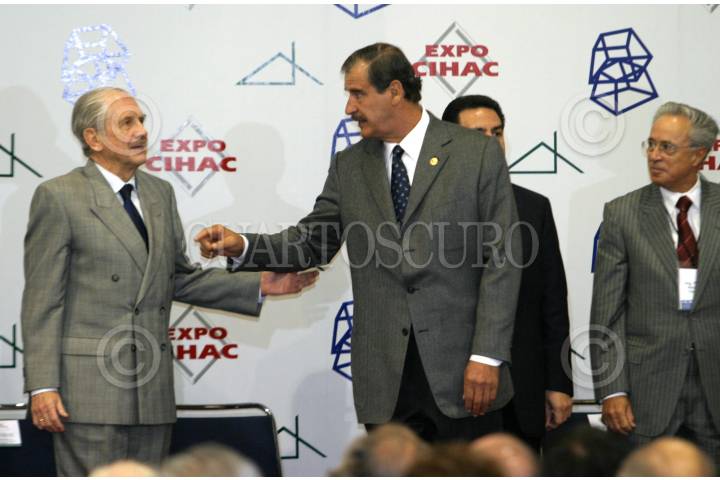 MEXICO, D.F. 14OCTUBRE2004.- Gonzalo Gout Ortiz, presidente del centro impulsor de la construcción y la habitación, recibe al presidente Vicente Fox a su llegada a la inauguración de la XVI exposición internacional de edificación y vivienda Expo CIHAC 2004. FOTO: Nelly Salas/CUARTOSCURO.COM