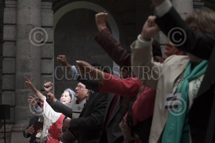 MÉXICO, D.F., 13MARZO2013.- José Narro Robles, rector de la UNAM, inauguró el congreso "Pobreza y desigualdad social: para la reconfiguración de la política social" en el Palacio de Minería. En la imagen la comunidad universitaria entona el goya universitario. FOTO: MOISÉS PABLO /CUARTOSCURO.COM
