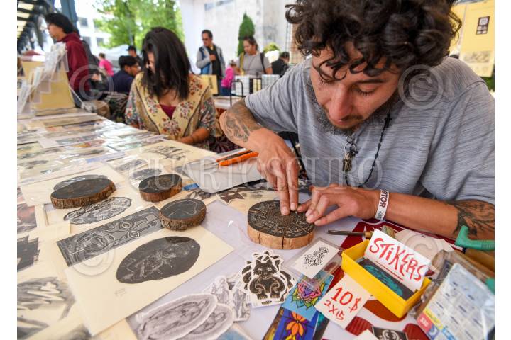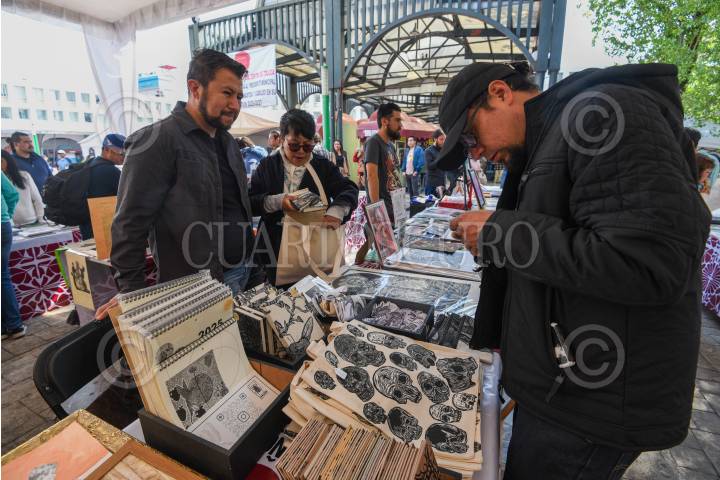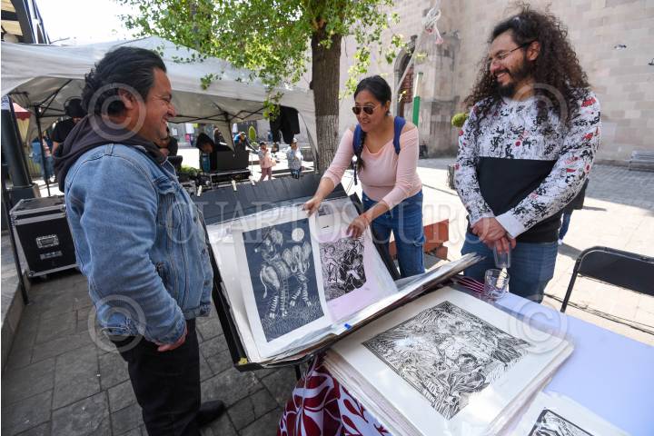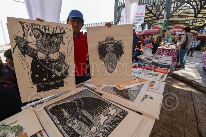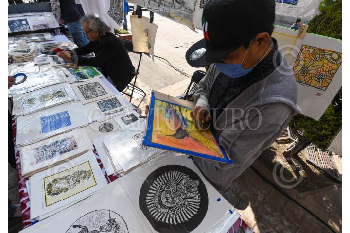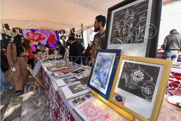 TOLUCA, ESTADO DE MÉXICO, 24ENERO2025.- Más de 20 artistas gráficos se reúnen en la Plaza Fray Andrés de Castro en la capital mexiquense como parte del 1er Festival de la Gráfica en Toluca, con países invitados como Japón y Suiza, y exposiciones dedicadas a la gráfica y litografía; los asistentes pueden adquirir alguna de las piezas de artistas locales, nacionales y extranjeros, este festival estará hasta el próximo 26 de enero. FOTO: CRISANTA ESPINOSA AGUILAR /CUARTOSCURO.COM