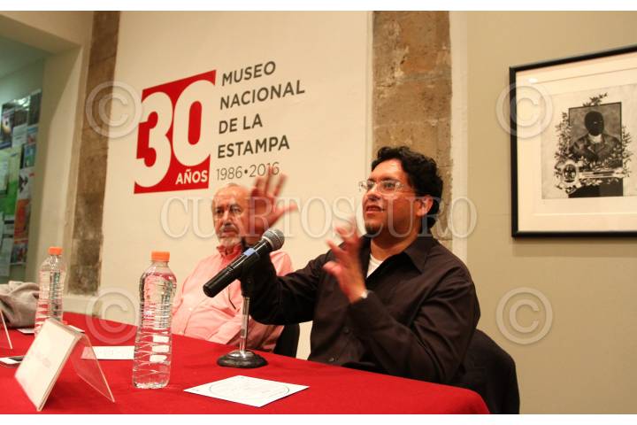 CIUDAD DE MÉXICO, 04AGOSTO2016.- Humberto Musacchio, periodista y crítico de arte; Erik Castillo, curador, durante la inauguración de la exposición "El saber gráfico. Una perspectiva sobre la colección del Museo Nacional de la Estampa a 30 años de su fundación". FOTO: ADOLFO VLADIMIR / CUARTOSCURO.COM