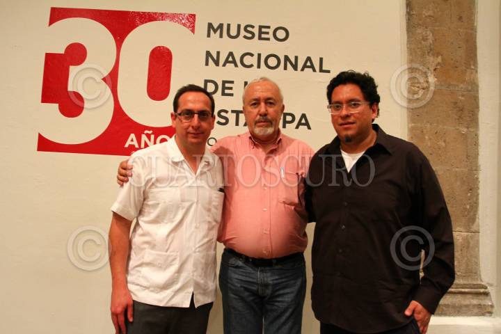 CIUDAD DE MÉXICO, 04AGOSTO2016.- Santiago Pérez García, director del Museo Nacional de la Estampa, Humberto Musacchio, periodista y crítico de arte y Erik Castillo, curador, durante la inauguración de la exposición "El saber gráfico. Una perspectiva sobre la colección del Museo Nacional de la Estampa a 30 años de su fundación". FOTO: ADOLFO VLADIMIR / CUARTOSCURO.COM