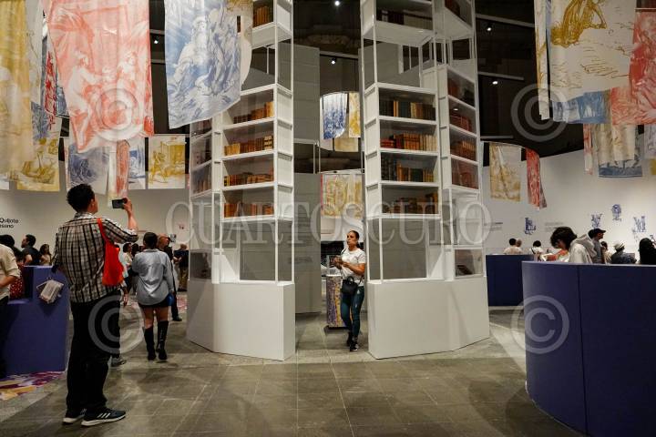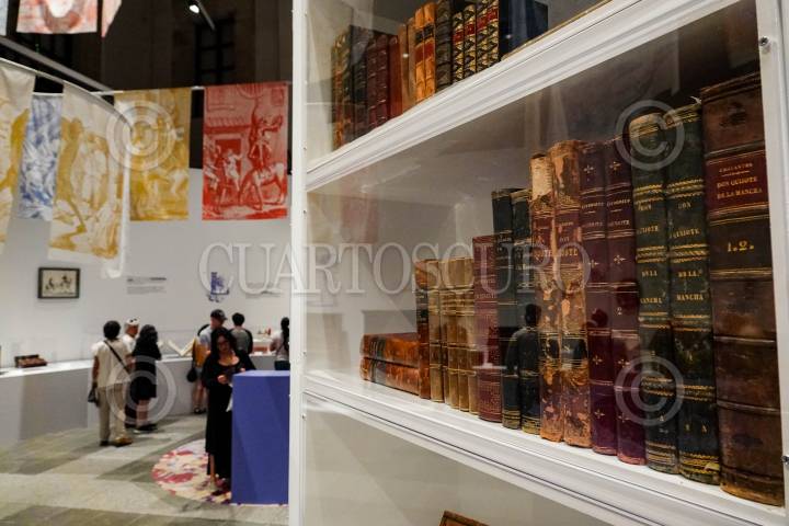 CIUDAD DE MÉXICO, 18MAYO2024.- En el marco del Día Internacional de los Museos, el Museo Franz Mayer realizó la inauguración de la exposición “Vuelta al Quijote”, una recopilación de de ediciones de El ingenioso hidalgo don Quijote de la Mancha que Franz Mayer reunió a lo largo de su vida. La muestra hace énfasis en la evolución artística de las ilustraciones de estas publicaciones, la relevancia literaria y editorial, la cultura material del libro y la vigencia de diferentes temas que Cervantes abordó en la nombrada como la primer novela moderna de la literatura universal. FOTO: GALO CAÑAS/CUARTOSCURO.COM
