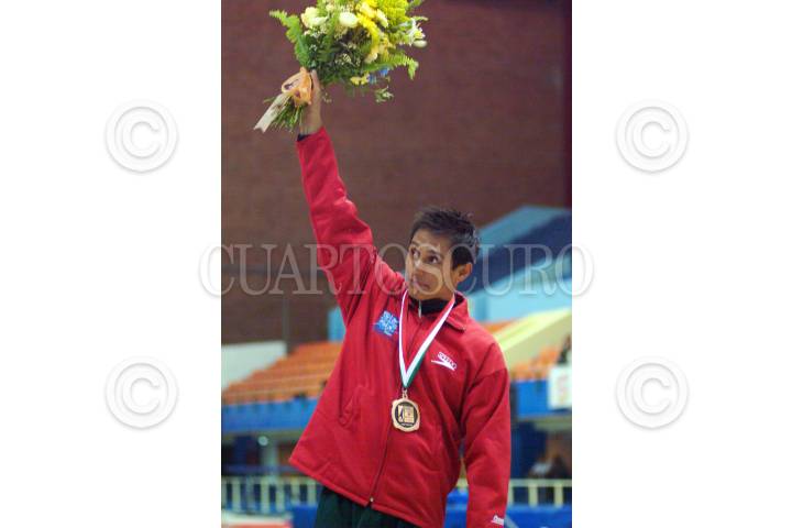 MÉXICO, D.F. 19JUNIO2004.- Fernando Platas obtuvo el tercer lugar de la categorìa trampolìn de tres metros en el Grand Prix de clavados disputado en la alberca olímpica. FOTO: Iván Stephens/CUARTOSCURO.COM