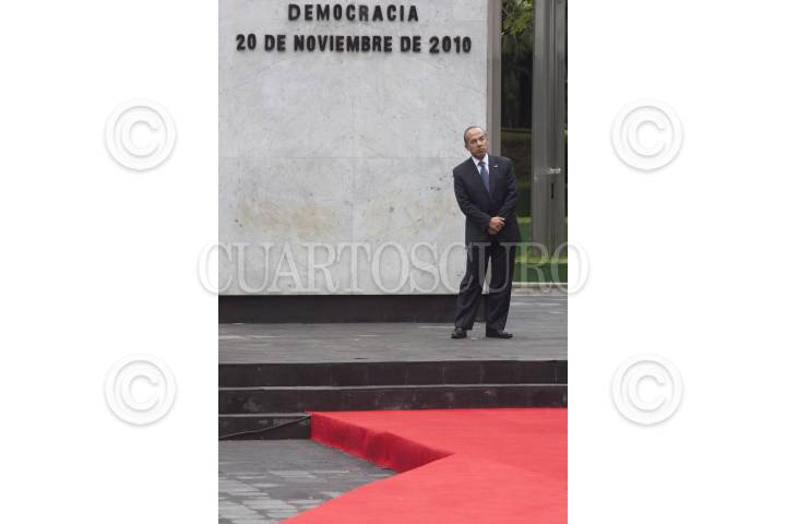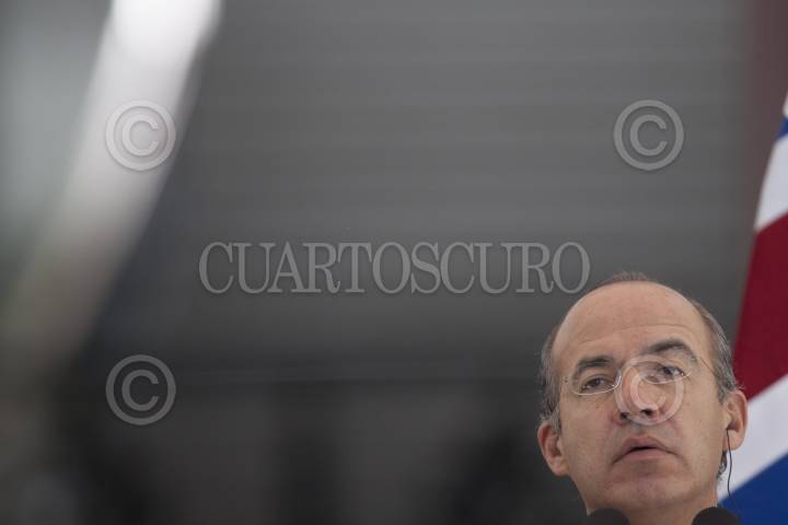 MÉXICO, D.F., 20JUNIO2012.- El Jefe del Ejecutivo Felipe Calderón Hinojosa durante la ceremonia oficial en donde fue recibido el Primer Ministro de la Gran Bretaña David Cameron, realizada en el Monumento a Francisco I. Madero de la residencia oficial de Los Pinos. FOTO: MOISÉS PABLO /CUARTOSCURO.COM