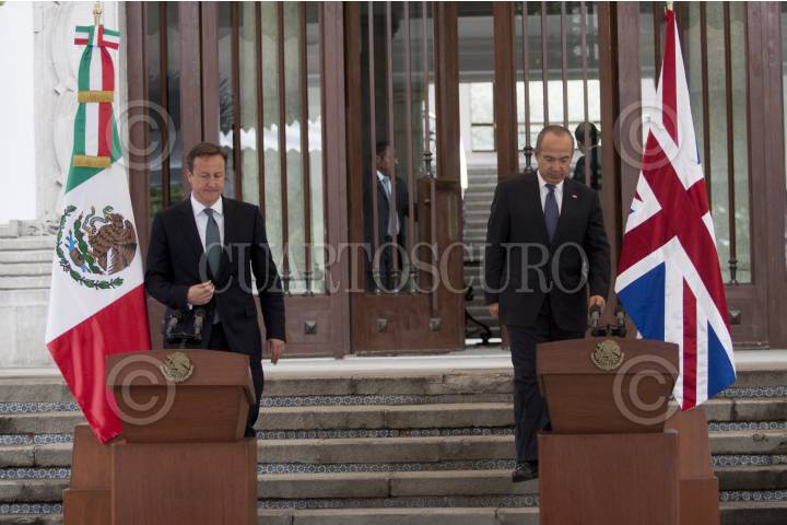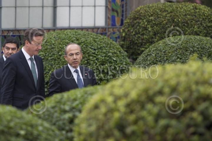 MÉXICO, D.F., 20JUNIO2012.- David Cameron, Primer Ministro de la Gran Bretaña e Irlanda del Norte y Felipe Calderón Hinojosa, Presidente de México, ofrecieron un mensaje en las escalinatas de la residencia oficial de Los Pinos. FOTO: MOISÉS PABLO /CUARTOSCURO.COM