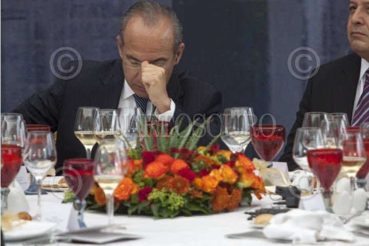 MÉXICO, D.F., 20JUNIO2012.- Felipe Calderón Hinojosa, Presidente de México, durante la comida-brindis en en el Alcázar del Castillo de Chapultépec con motivo de la visita del Primer Ministro de la Gran Bretaña David Cameron. FOTO: MOISÉS PABLO /CUARTOSCURO.COM