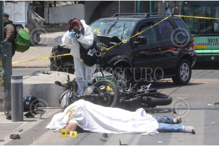 Una camioneta que participó en un choque en el cruce de las avenidas Gran Canal y avenida San Juan de Aragón intentó darse a la fuga impactando a un motociclista que murió en el lugar.
