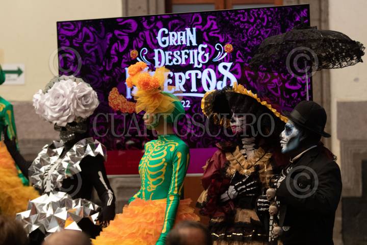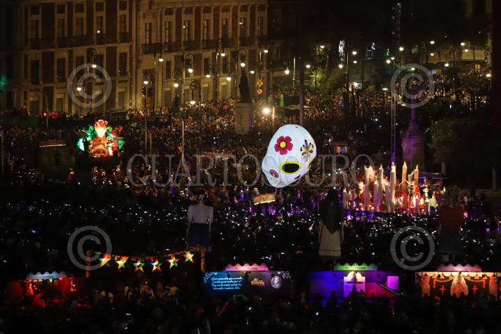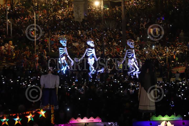 Gran desfile Día de muertos 2022 a su llegada a la plancha del zócalo capitalino. Ciudad de México.