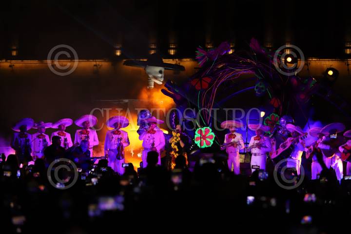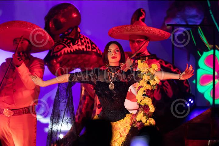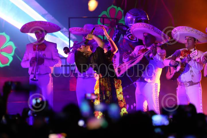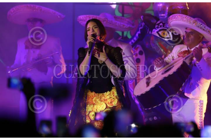 Presentación de la intérprete Ángela Aguilar en el zócalo capitalino como parte del Gran desfile de día de muertos.